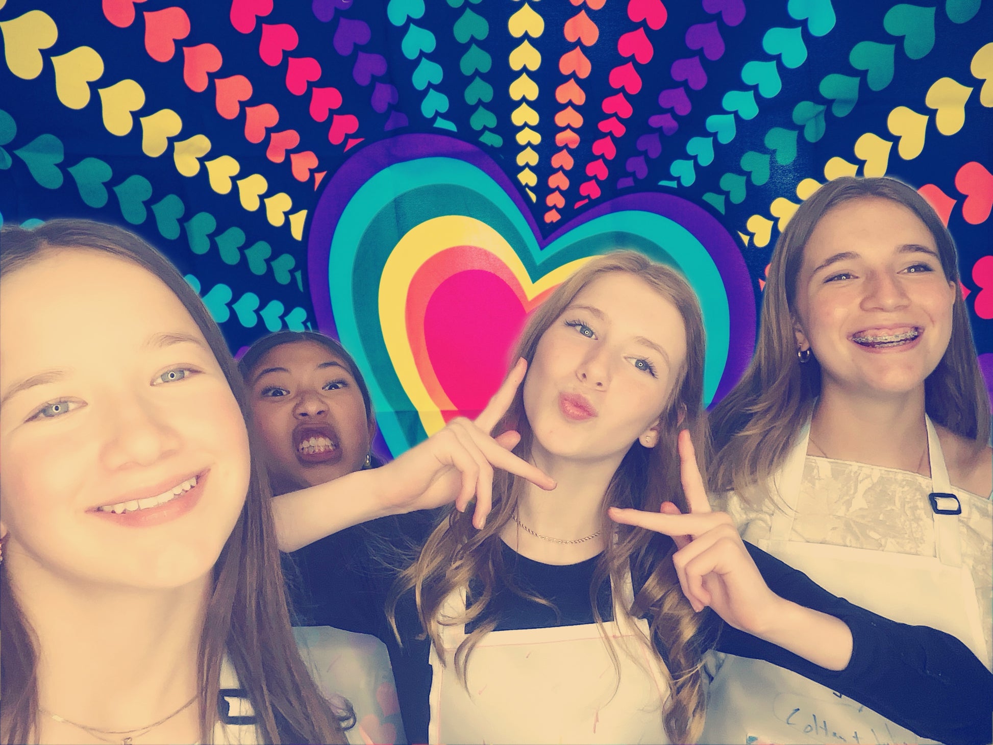 When you arrive for your event, check in at reception and let us know how you would like your party to flow. Typically, we allot about 1/2 an hour for guests to get settled, eat any outside food, and/or decorate aprons (if applicable) before we bring out the cakes. Decorating time varies and depends on the cake design and skill level of the party-goers. Expect anywhere from 1/2 to 1 1/2 hours for decorating. As guests wrap up decorating, they're encouraged to take fancy digital photos at our photo booth station.